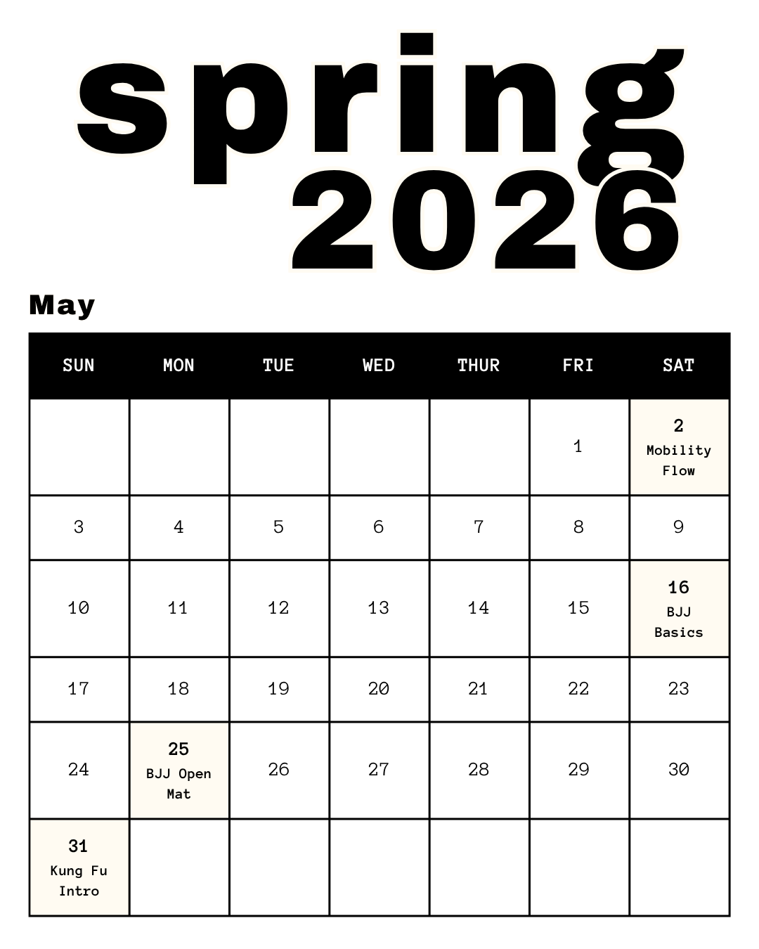 Please arrive to training at least 5 minutes (and no more than 30 minutes) before the start time to get situated. if it’s your first time, please arrive about 10 minutes early so you can sign our waiver.
